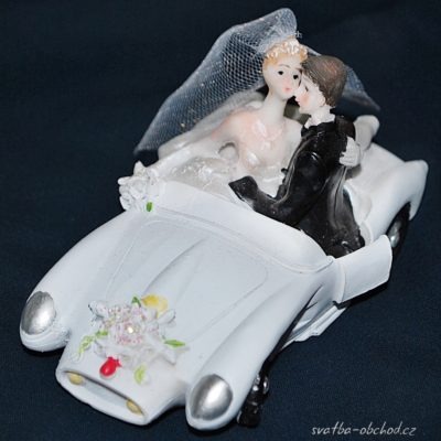 Originální a překrásná, ručně malovaná figurka z jemného porcelánu. Nevěsta v bílých svatebních šatičkách s tylovým závojíčkem. Ženich v černém obleku. Svatební pár v autíčku 78